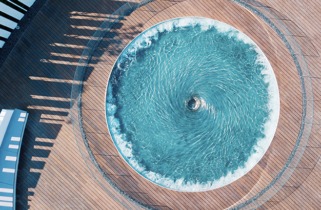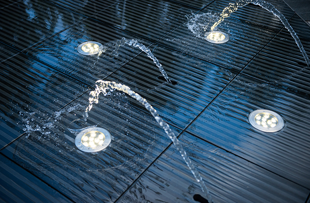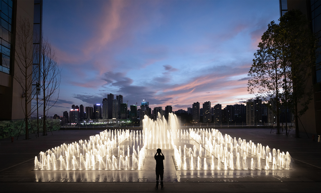 水本無形,它的物理特性讓它能輕易地跟隨容器而呈現(xiàn)不同的面貌。獨(dú)特的延展性使得水能呈現(xiàn)無以計(jì)數(shù)的不同效果。燈光的布置,介質(zhì)的紋理,顏色和動(dòng)態(tài)都能給水帶來無窮的變化。